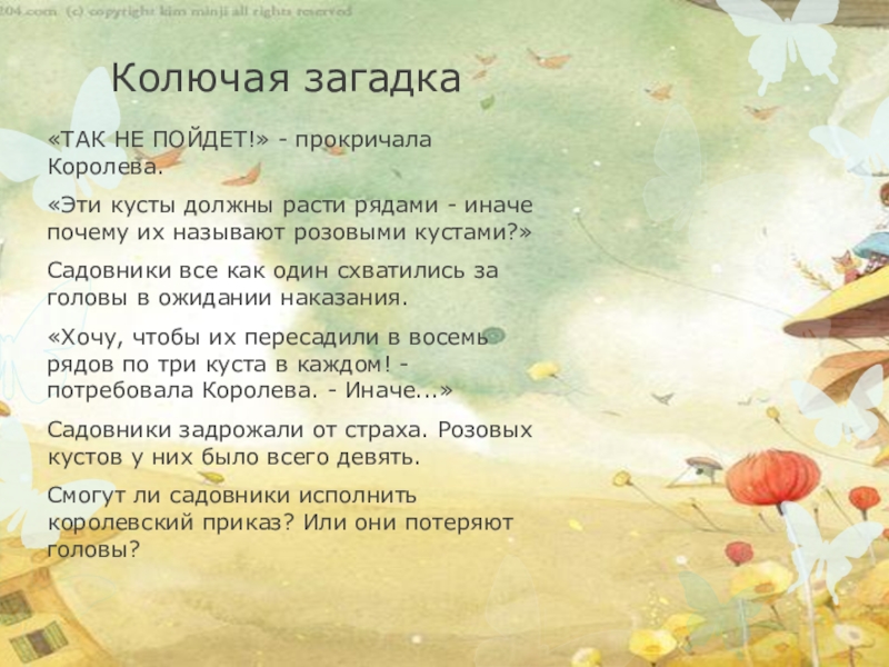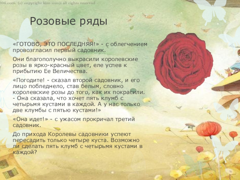 Садовники задрожали от страха. Розовых кустов у них было всего девять.