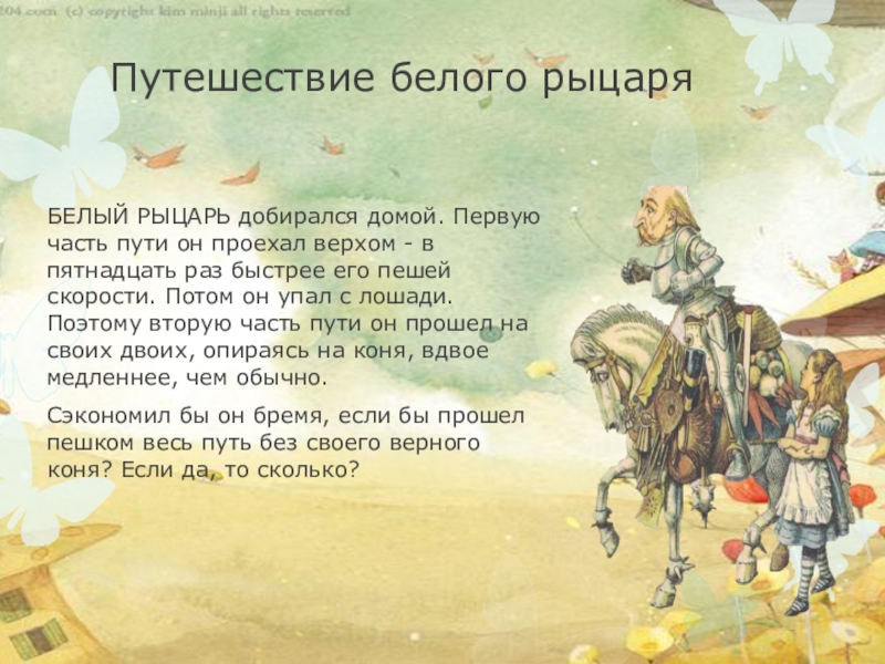 БЕЛЫЙ РЫЦАРЬ добирался домой. Первую часть пути он проехал