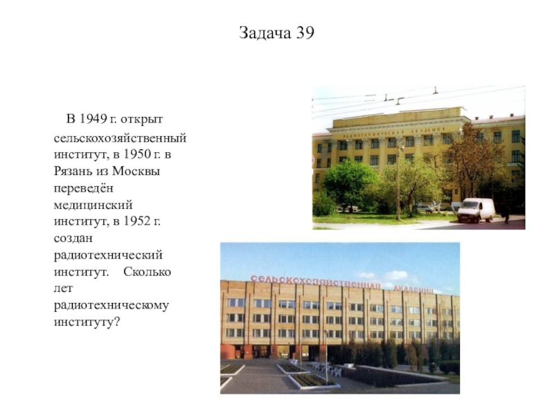 г. в Рязань из Москвы переведён медицинский институт, в 1952 г. создан радиотехнический институт. Сколько лет радиотехническому институту?