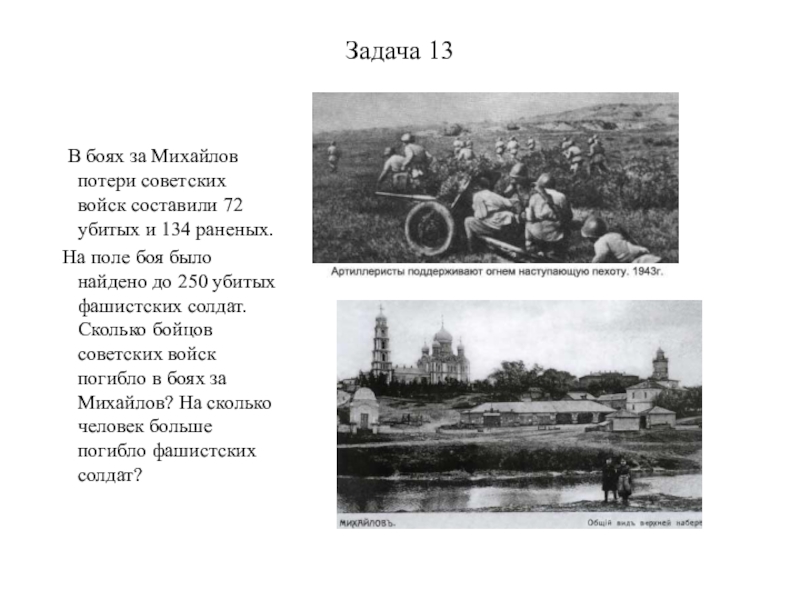 На поле боя было найдено до 250 убитых фашистских солдат. Сколько бойцов советских войск погибло в боях за Михайлов? На сколько человек больше погибло фашистских солдат?