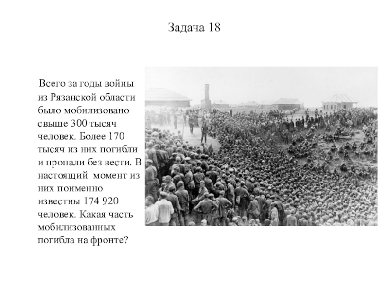 мобилизовано свыше 300 тысяч человек. Более 170 тысяч из них погибли и пропали без вести. В настоящий момент из них поименно известны 174 920 человек. Какая часть мобилизованных погибла на фронте?