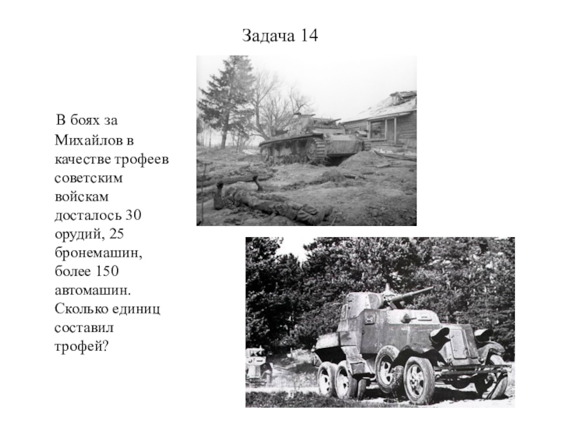 войскам досталось 30 орудий, 25 бронемашин, более 150 автомашин. Сколько единиц составил трофей?