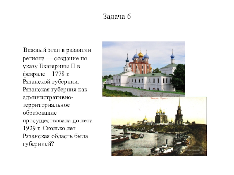 указу Екатерины II в феврале 1778 г. Рязанской губернии. Рязанская губерния как административно- территориальное образование просуществовала до лета 1929 г. Сколько лет Рязанская область была губернией?