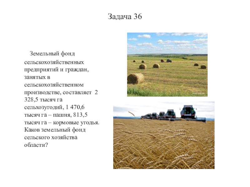 в сельскохозяйственном производстве, составляет 2 328,5 тысяч га сельхозугодий, 1 470,6 тысяч га – пашня, 813,5 тысяч га – кормовые угодья. Каков земельный фонд сельского хозяйства области?