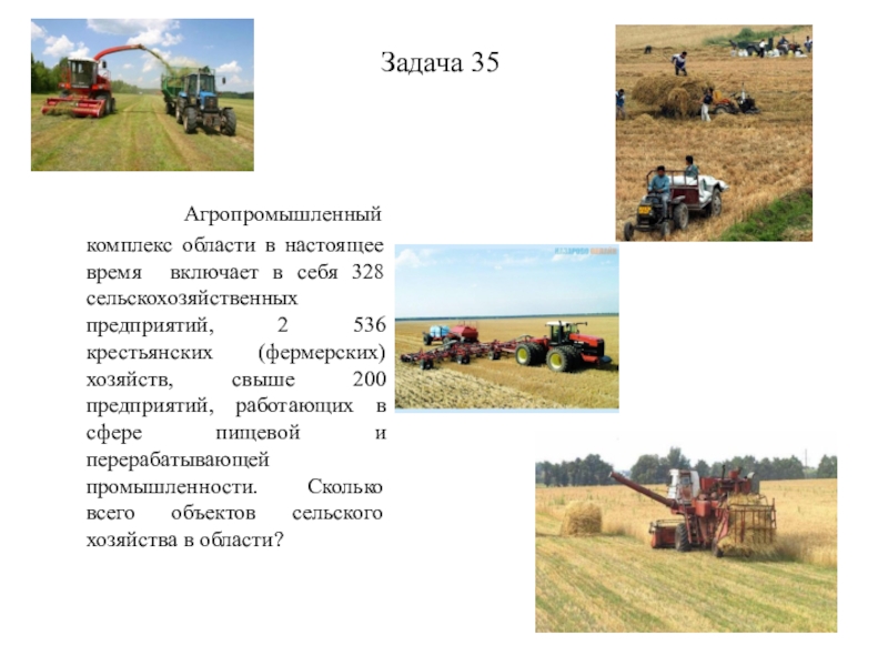 в себя 328 сельскохозяйственных предприятий, 2 536 крестьянских (фермерских) хозяйств, свыше 200 предприятий, работающих в сфере пищевой и перерабатывающей промышленности. Сколько всего объектов сельского хозяйства в области?