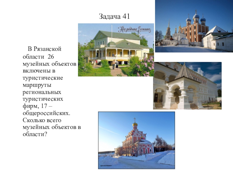 в туристические маршруты региональных туристических фирм, 17 – общероссийских. Сколько всего музейных объектов в области?