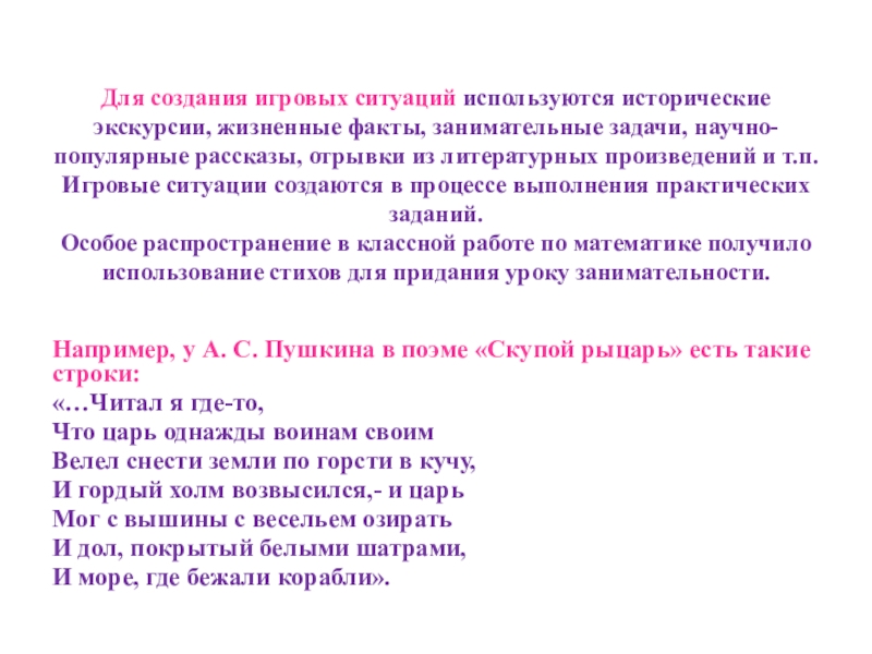 Например, у А. С. Пушкина в поэме «Скупой рыцарь» есть такие строки: