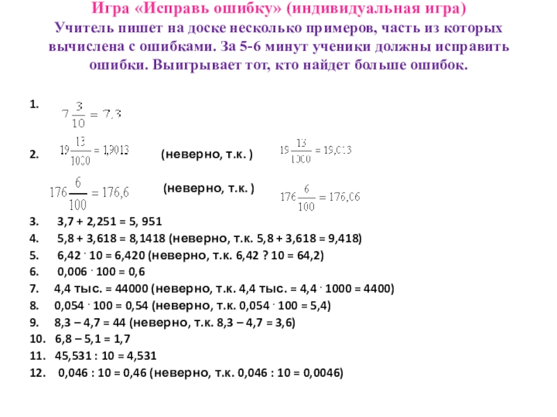12. 0,046 : 10 = 0,46 (неверно, т.к. 0,046 : 10 = 0,0046)