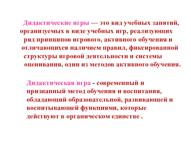 Дидактическая игра - современный и признанный метод обучения и воспитания, обладающий образовательной, развивающей и воспитывающей функциями, которые действуют в органическом единстве .
