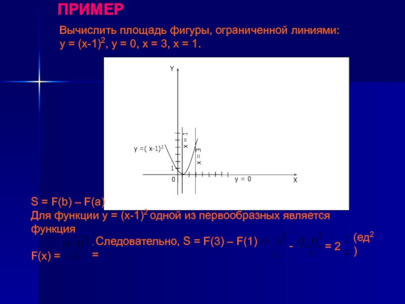 Для функции у = (х-1)2 одной из первообразных является функция