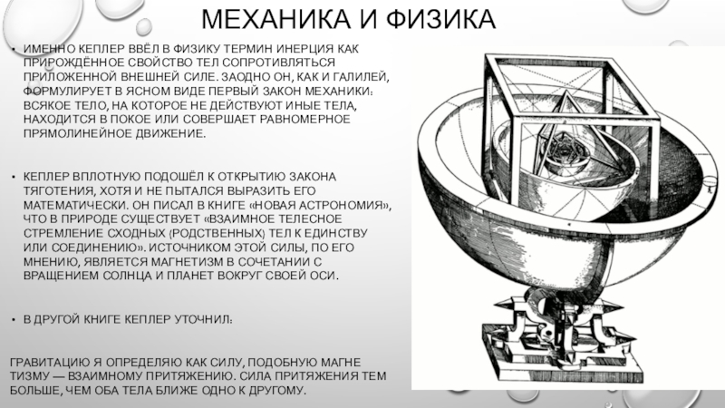 Именно Кеплер ввёл в физику термин инерция как прирождённое