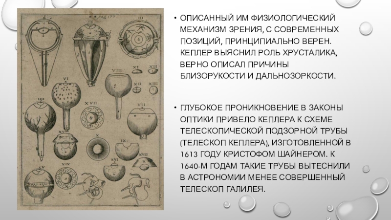 Слайд 8Описанный им физиологический механизм зрения, с современных позиций, принципиально верен. Кеплер