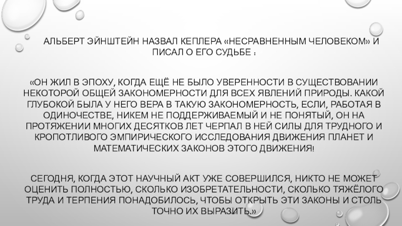 Слайд 11 Альберт Эйнштейн назвал Кеплера «несравненным человеком» и писал