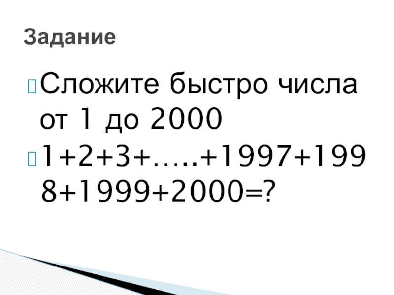 Слайд 8Сложите быстро числа от 1 до 2000