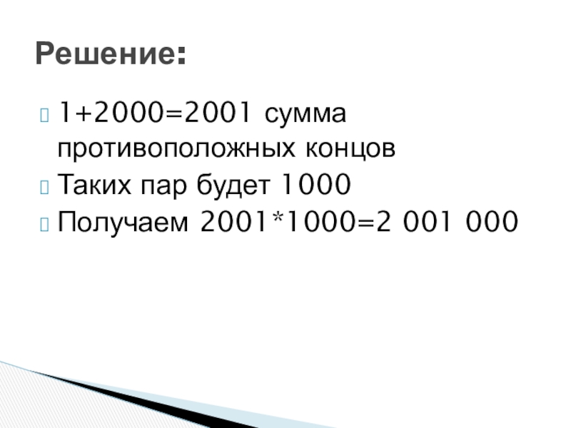 Слайд 91+2000=2001 сумма противоположных концов