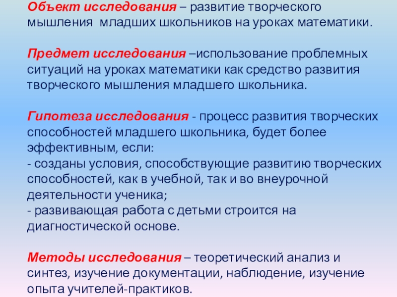 3) выявить, способствует ли проблемное обучение математике развитию творческого мышления школьников.