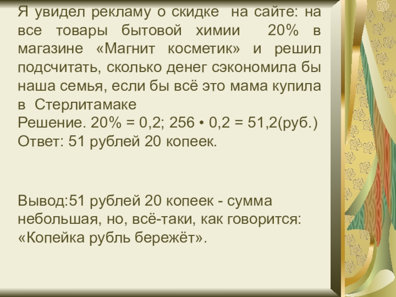 химии 20% в магазине «Магнит косметик» и решил подсчитать, сколько денег сэкономила бы наша семья, если бы всё это мама купила в Стерлитамаке