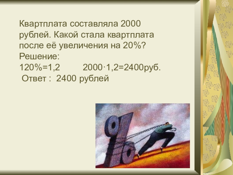 Слайд 25Квартплата составляла 2000 рублей. Какой стала квартплата после её увеличения на