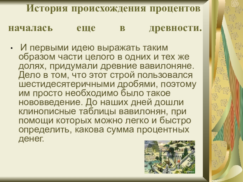 Слайд 5ИСТОРИЯ ВОЗНИКНОВЕНИЯ ПРОЦЕНТА