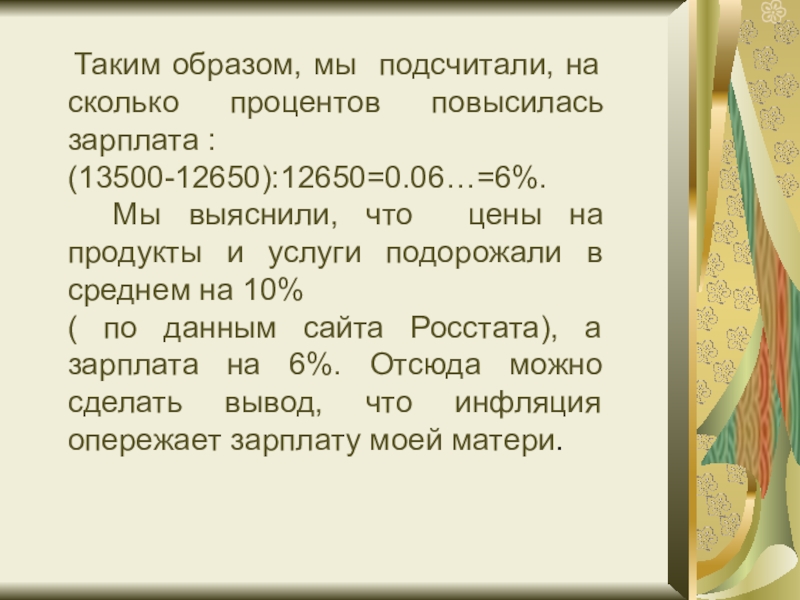 Слайд 16 Таким образом, мы подсчитали, на сколько процентов повысилась зарплата :