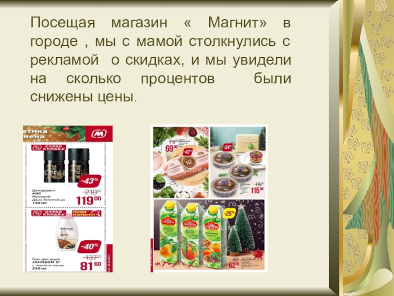 Слайд 22Посещая магазин « Магнит» в городе , мы с мамой столкнулись