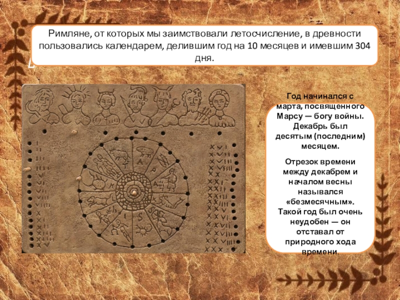 Отрезок времени между декабрем и началом весны назывался «безмесячным». Такой год был очень неудобен — он отставал от природного хода времени.
