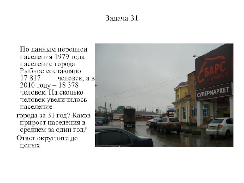 Рыбное составляло 17 817 человек, а в 2010 году – 18 378 человек. На сколько человек увеличилось население