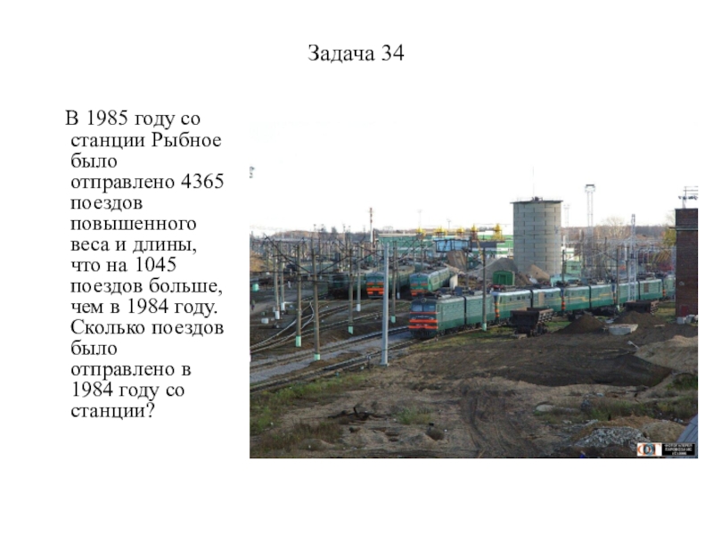 4365 поездов повышенного веса и длины, что на 1045 поездов больше, чем в 1984 году. Сколько поездов было отправлено в 1984 году со станции?