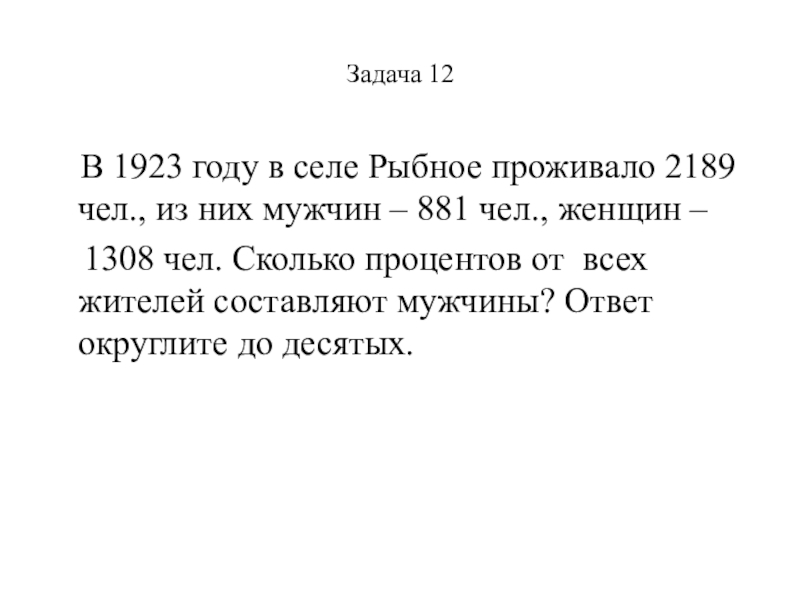 1308 чел. Сколько процентов от всех жителей составляют мужчины? Ответ округлите до десятых.