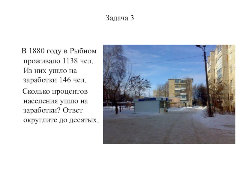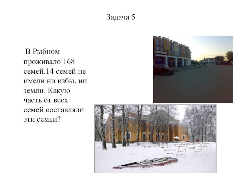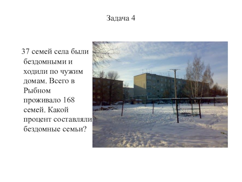 чужим домам. Всего в Рыбном проживало 168 семей. Какой процент составляли бездомные семьи?