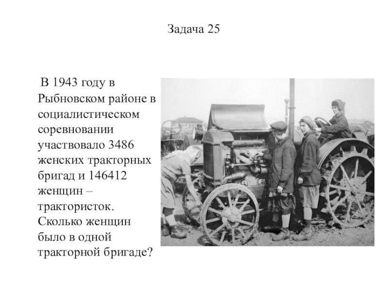 соревновании участвовало 3486 женских тракторных бригад и 146412 женщин – трактористок. Сколько женщин было в одной тракторной бригаде?