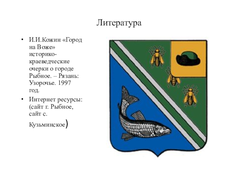 Интернет ресурсы: (сайт г. Рыбное, сайт с. Кузьминское)