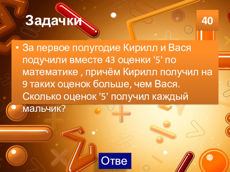Это сайт презентаций, где можно хранить и обмениваться своими презентациями, докладами, проектами, шаблонами в формате PowerPoint с другими пользователями. Мы помогаем школьникам, студентам, учителям, преподавателям хранить и обмениваться учебными материалами.