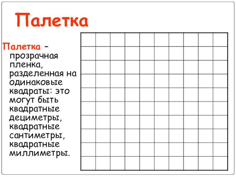 Палетка – прозрачная пленка, разделенная на одинаковые квадраты: это могут быть