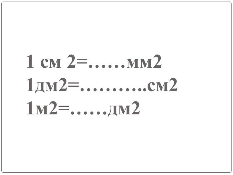 квадратные дециметры, квадратные сантиметры, квадратные миллиметры.