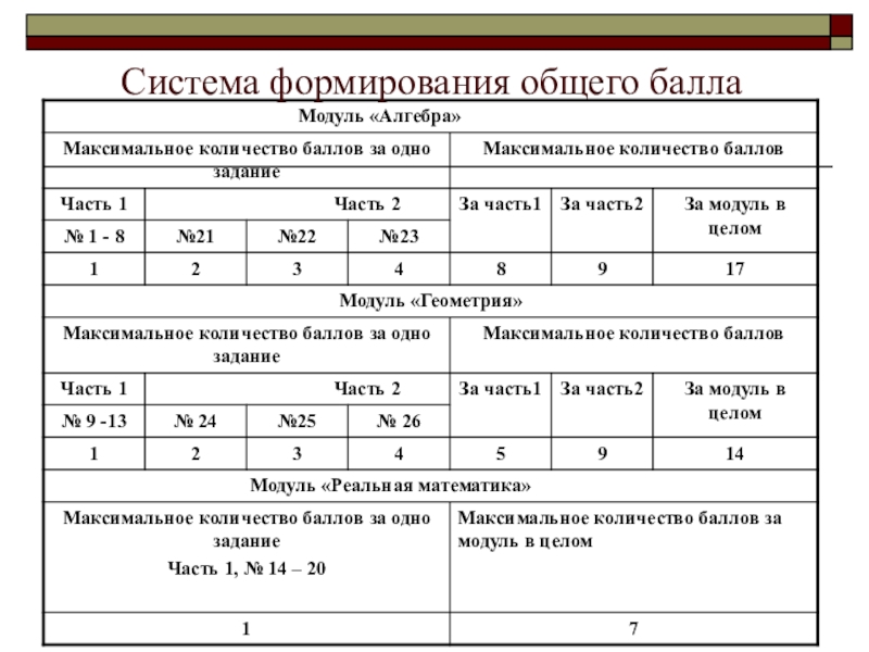 Слайд 11Шкала пересчета суммарного балла за выполнение экзаменационной работы в целом в
