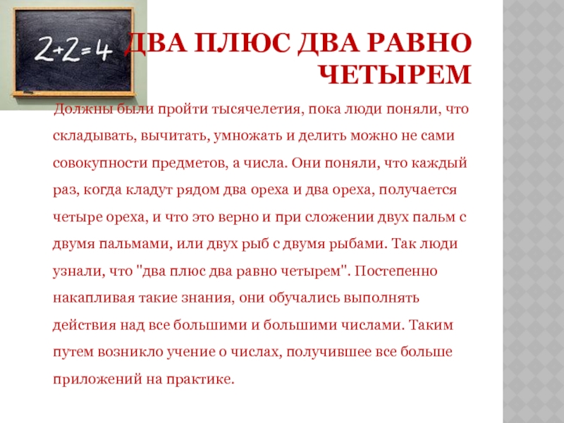 Два плюс два равно четырем   Должны были пройти тысячелетия, пока люди поняли, что складывать, вычитать,