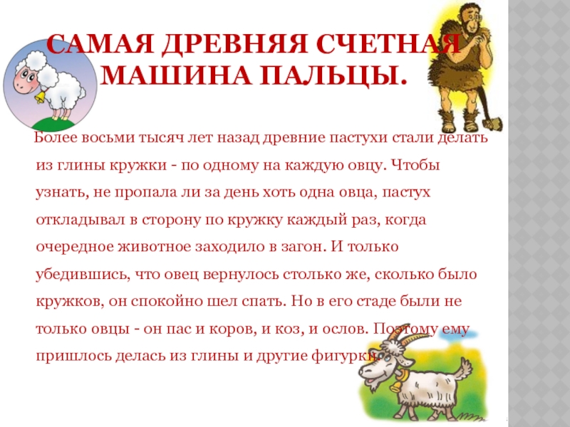 Самая древняя счетная машина пальцы.  Более восьми тысяч лет назад древние пастухи стали делать из глины