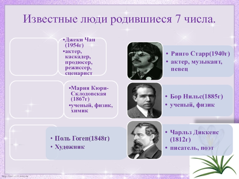 Слайд 12Известные люди родившиеся 7 числа.