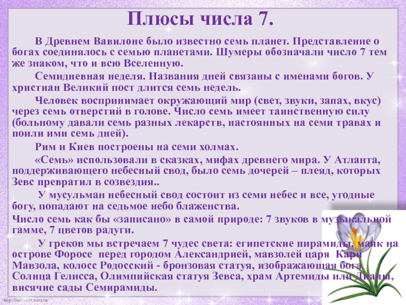 Слайд 26Плюсы числа 7.