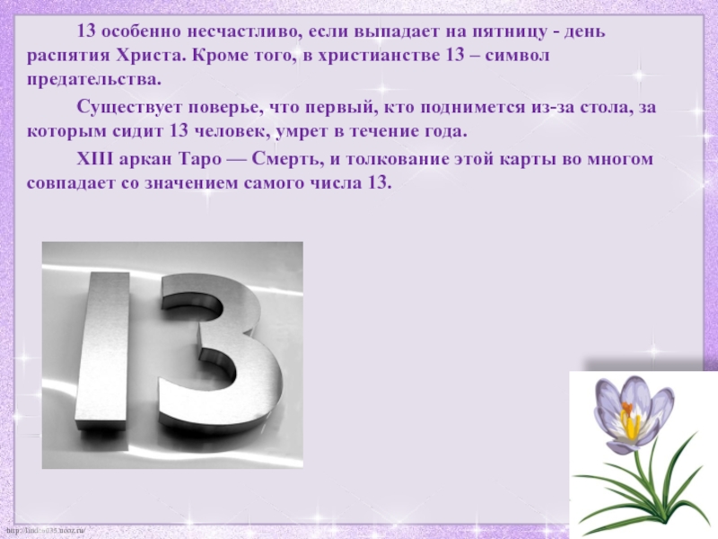 Слайд 25 13 особенно несчастливо, если выпадает на