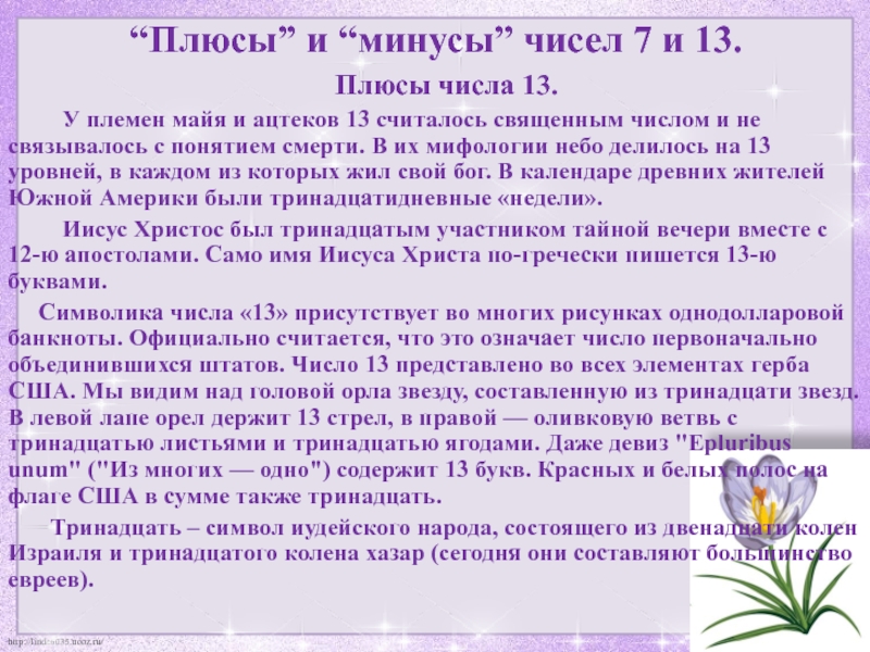 Слайд 23“Плюсы” и “минусы” чисел 7 и 13.