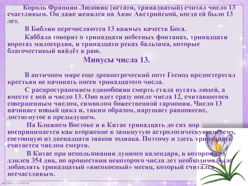 число 13 счастливым. Он даже женился на Анне Австрийской, когда ей было 13 лет.