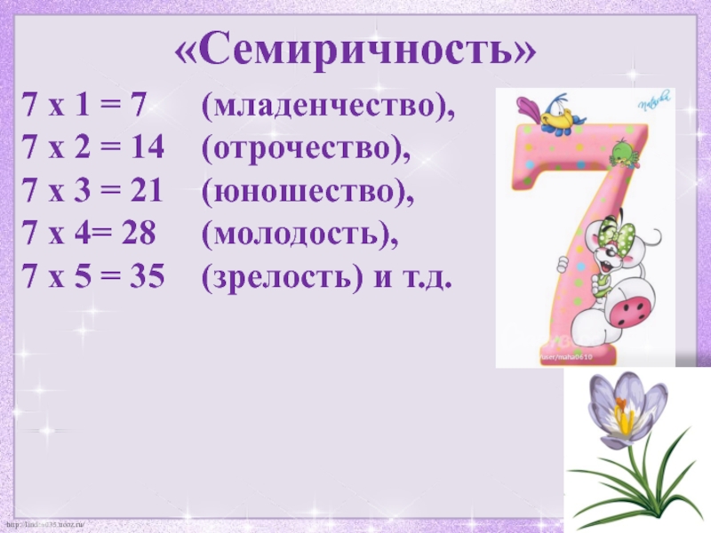 7 х 1 = 7 (младенчество),