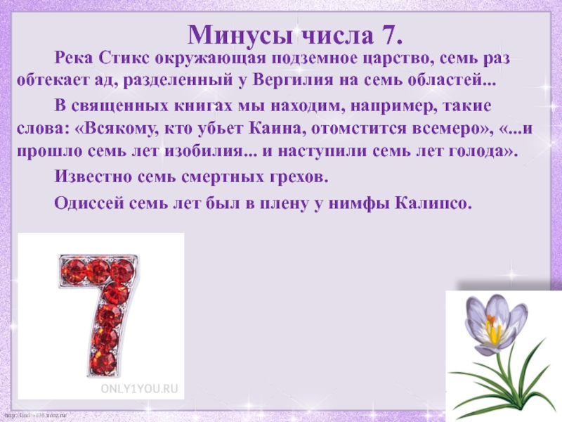 Слайд 27Минусы числа 7.