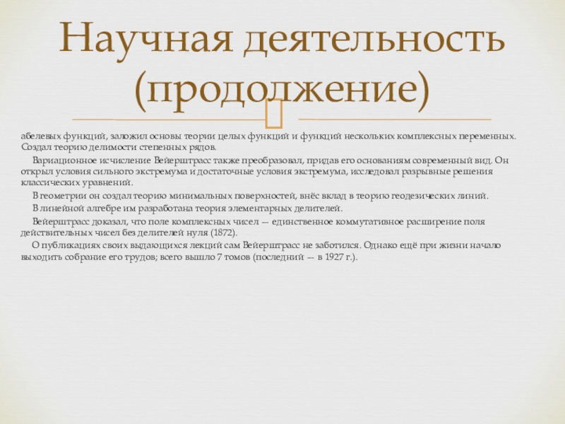 Теория эллиптических функций, приложения эллиптических функций к задачам геометрии и механики;