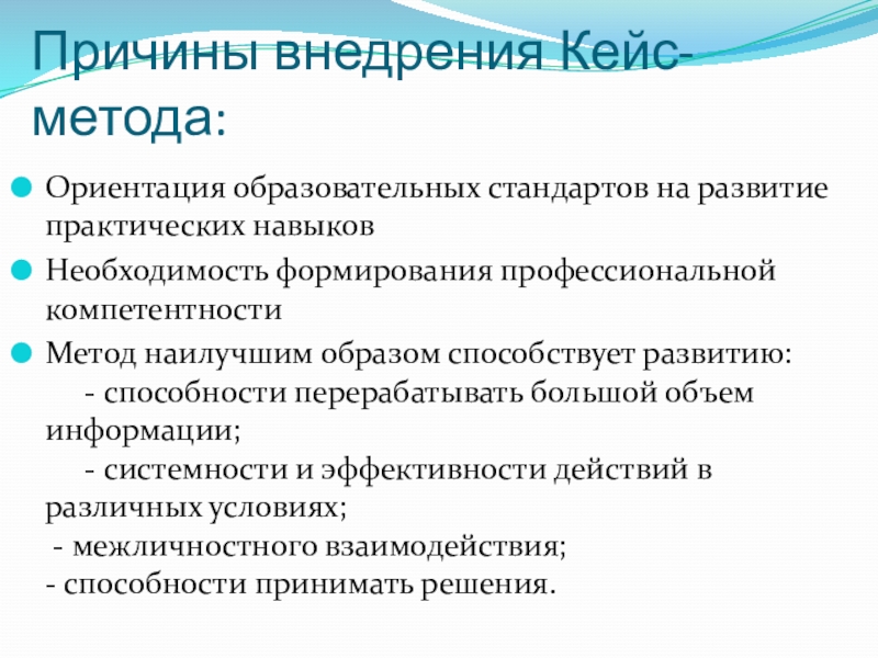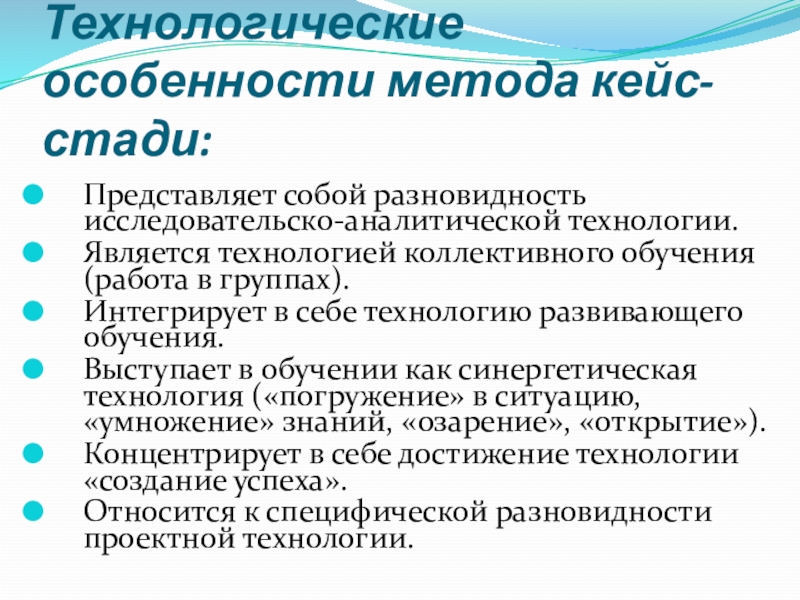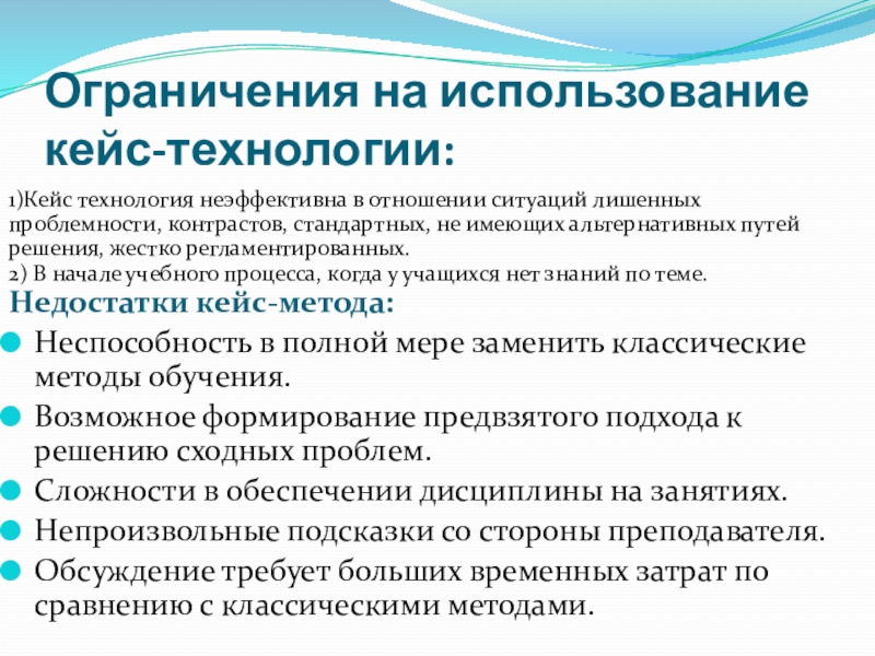 1)Кейс технология неэффективна в отношении ситуаций лишенных проблемности,