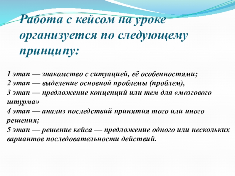 Слайд 16Работа с кейсом на уроке организуется по следующему принципу: