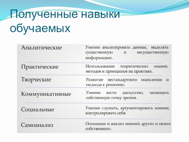 У обучаемых развивается умение слушать и понимать других людей, работать в команде;