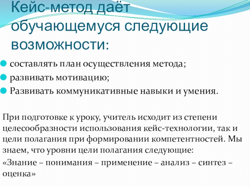 Слайд 24Кейс-метод даёт обучающемуся следующие возможности: